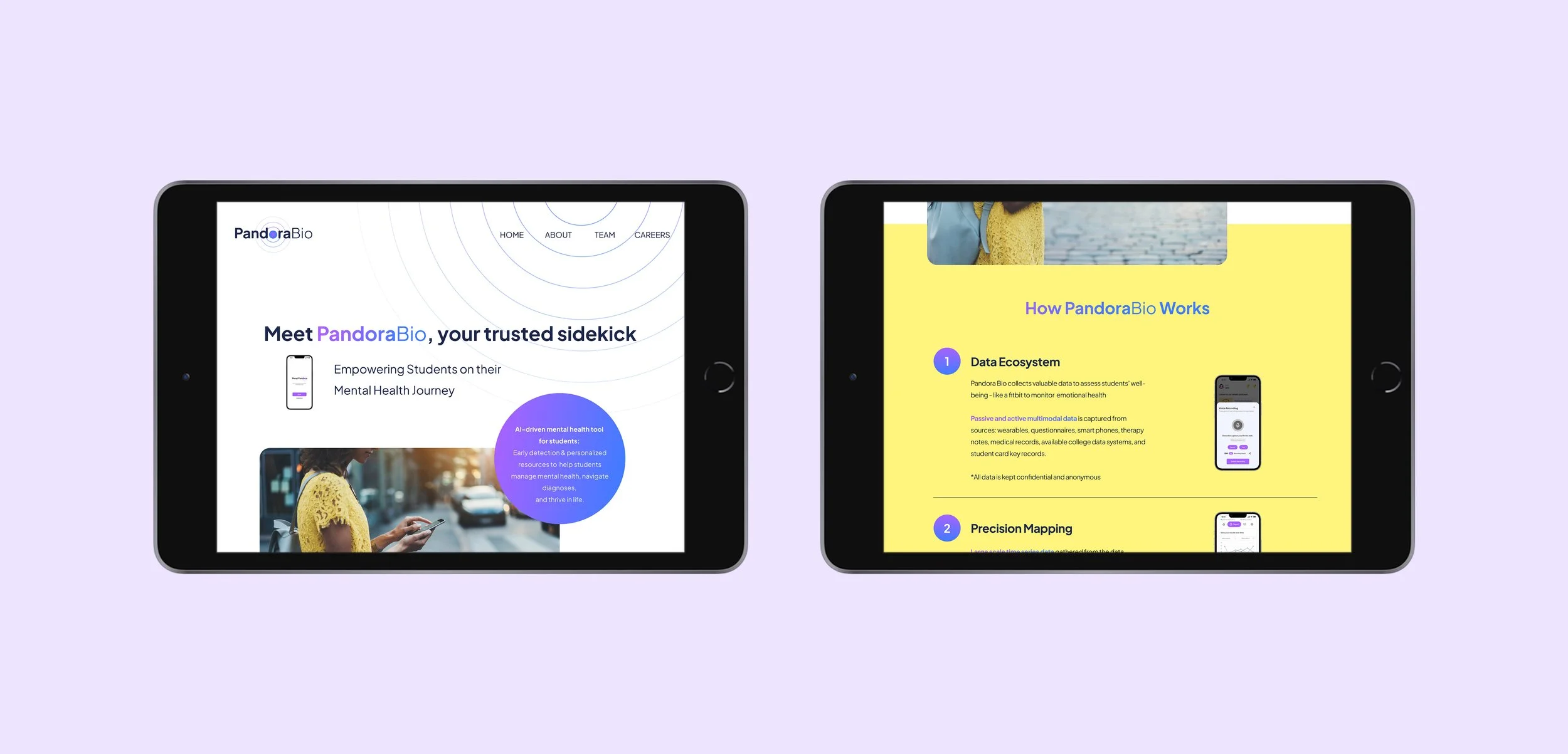 PandoraBio is an early stage startup that empowers college students to manage their mental health journey by detecting early symptoms and guiding them to personalized campus resources. At this stage, Pandora needed to distinguish themselves among competitors, raise capital, and appeal to the student market.