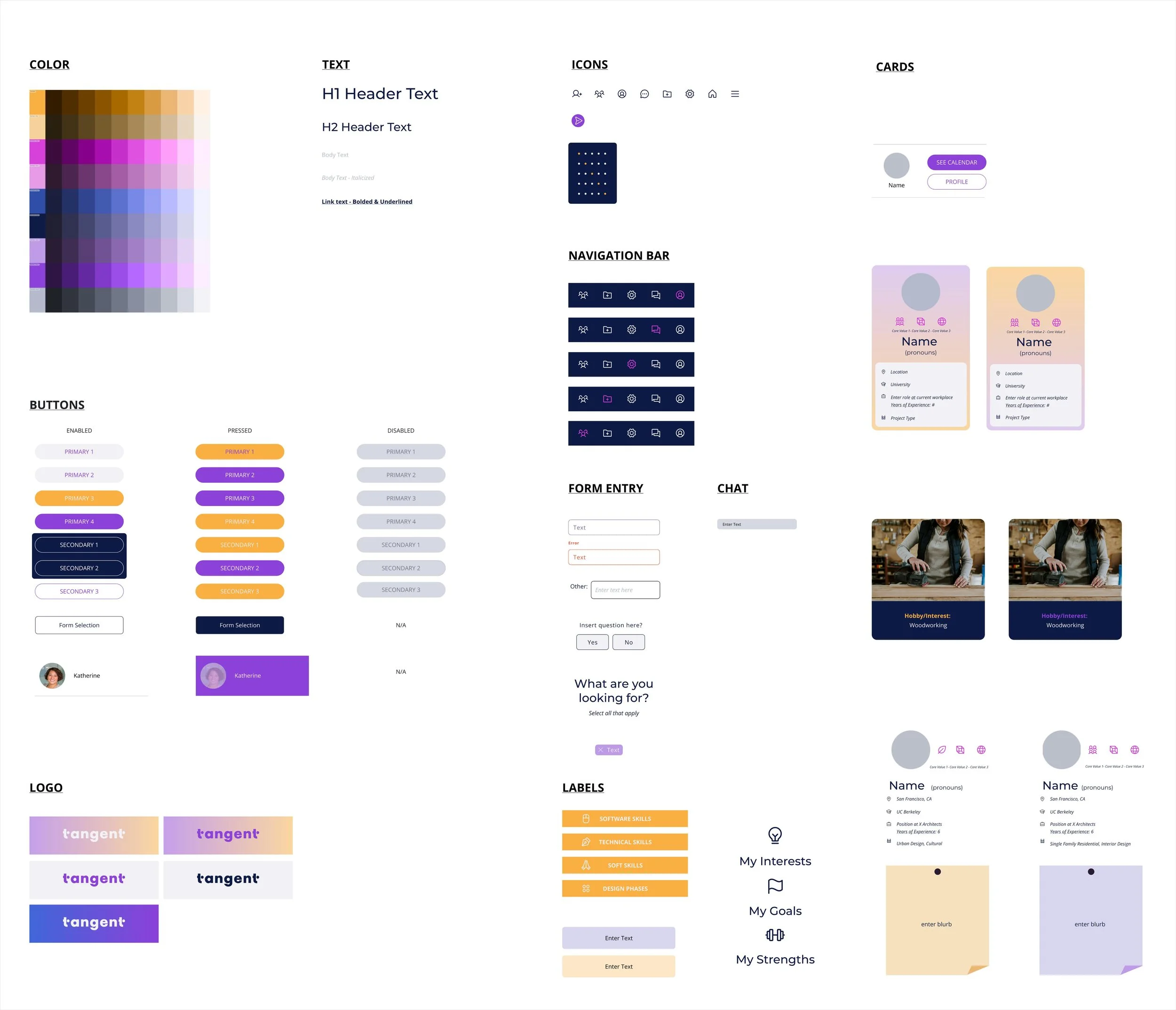 The name Tangent came from the product goals: to intersect professional journeys, encourage off-topic discussion for authentic relationships, and appeal to architects (who resonate with geometry terms).