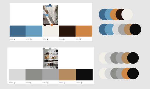 I extracted colors from this inspiration set to create a balanced color scheme, and developed an atomic design system for the UI design.